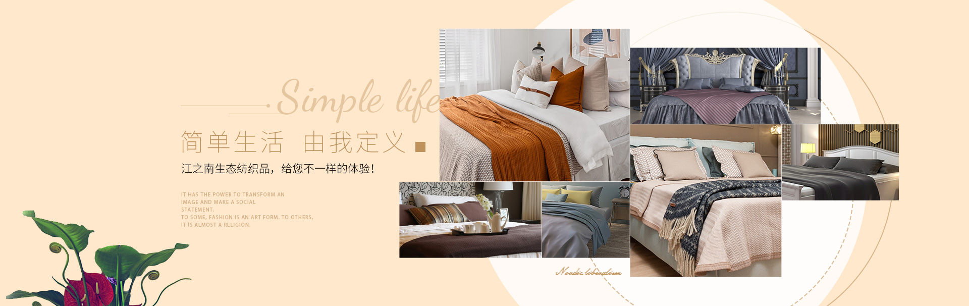 南通是中國家紡之都,江之南生態家紡是南通家紡行業的一家領軍企業,是以床上用品,家紡制品,生態紡織,睡眠系統,高端皮革制品,為一體的綜合性生態家紡企業,公司成立2018年,住落于世界家紡之都南通,隨著時代的發展,科技進步,高端新型科技材料運用于:軍工、航空航天及民用領域,公司獨立研發銀釬維材料運用到現代高端家紡,絲綢制品當中。...